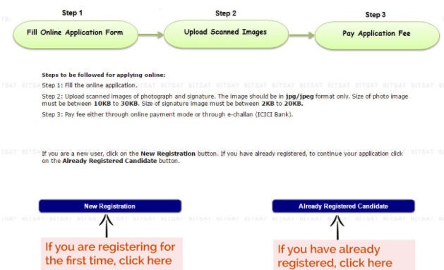 Process for filling BITSAT Application Form 2018: