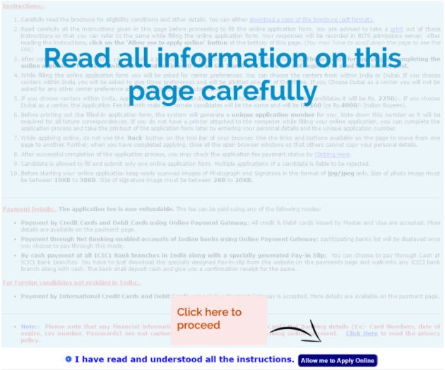 The BITSAT Application Form was available for filling online Between 19 December 2017 to 19 March 2018. Each candidate is allowed to fill only 1 Application form. In case of multiple application forms, they will be rejected. Before filling the Application Form, the candidates should read the guidelines/instructions carefully and understand them. Once done, click on the “Allow me to Apply Online”. The candidates must then follow the following steps to fill and submit the application form before the BITSAT Application Form 2018 last date.