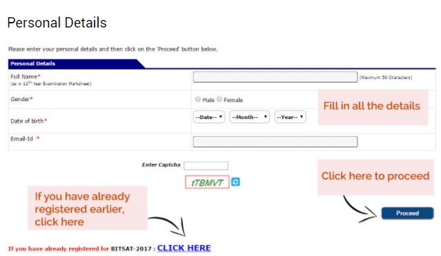 Step 2: Filling of BITSTAT Application Form 2018