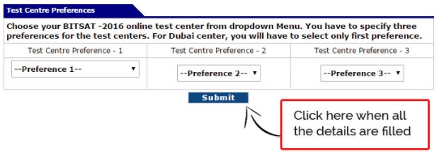 - Selection of Test Centre for BITSAT